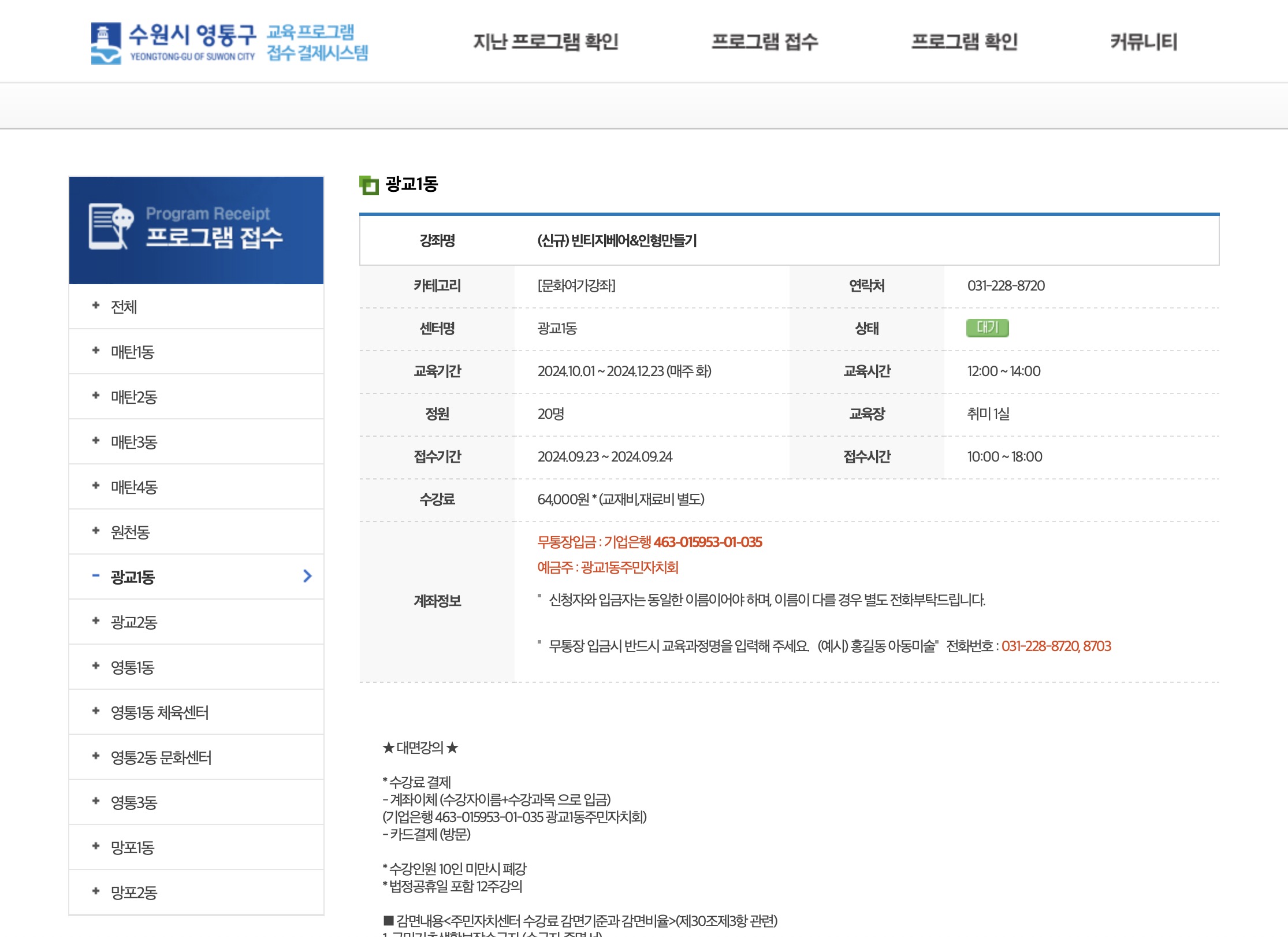 - 자세한 문의 사항은 수원 영통구 주민자치센터로 연락하시기 바랍니다.