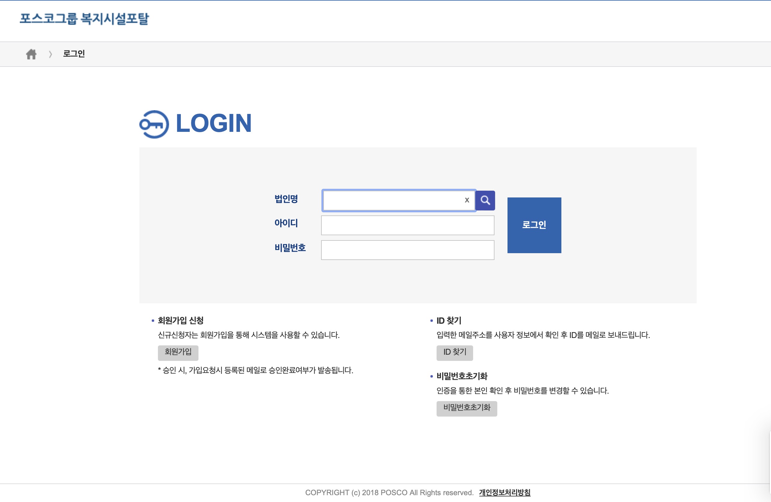포스코그룹 복지시설포탈